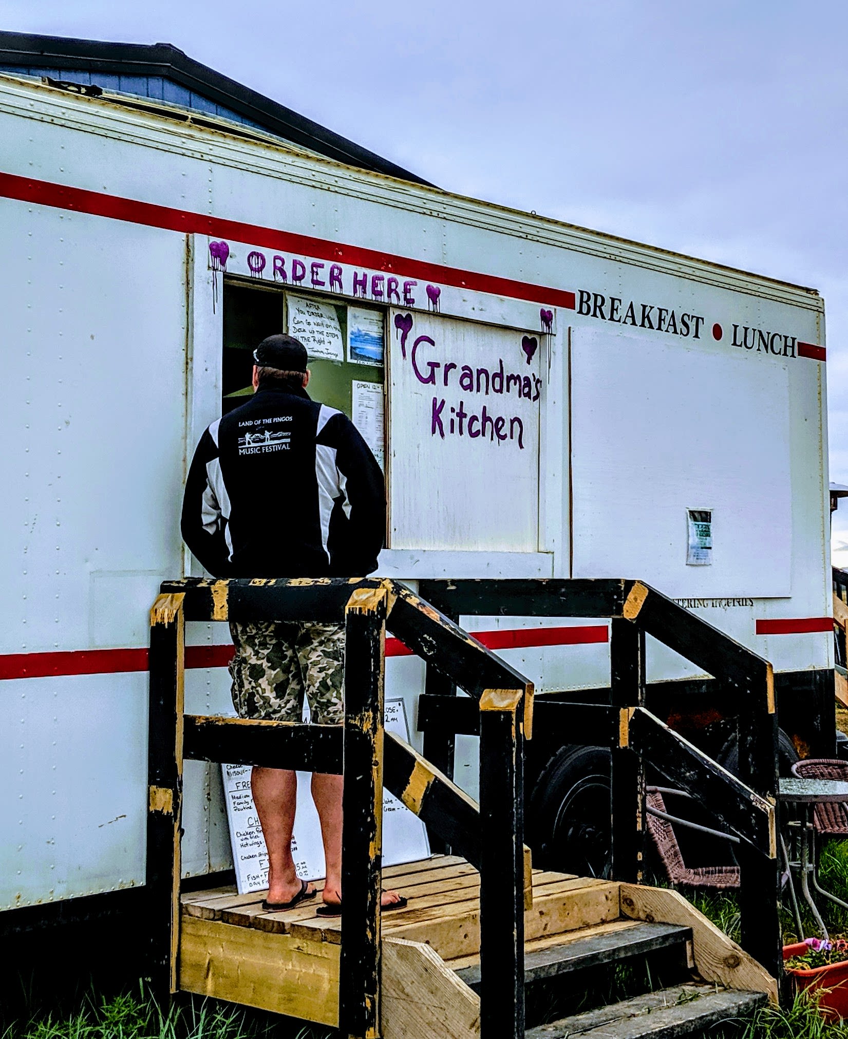 Try a tiny piece of beluga muktuk, a mix of whale blubber and skin, if available, at Grandma’s Kitchen. I recommend a splash of soya sauce. Grandma Joanne often has fresh buns, burgers and chicken fingers on offer if muktuk isn’t your first choice.