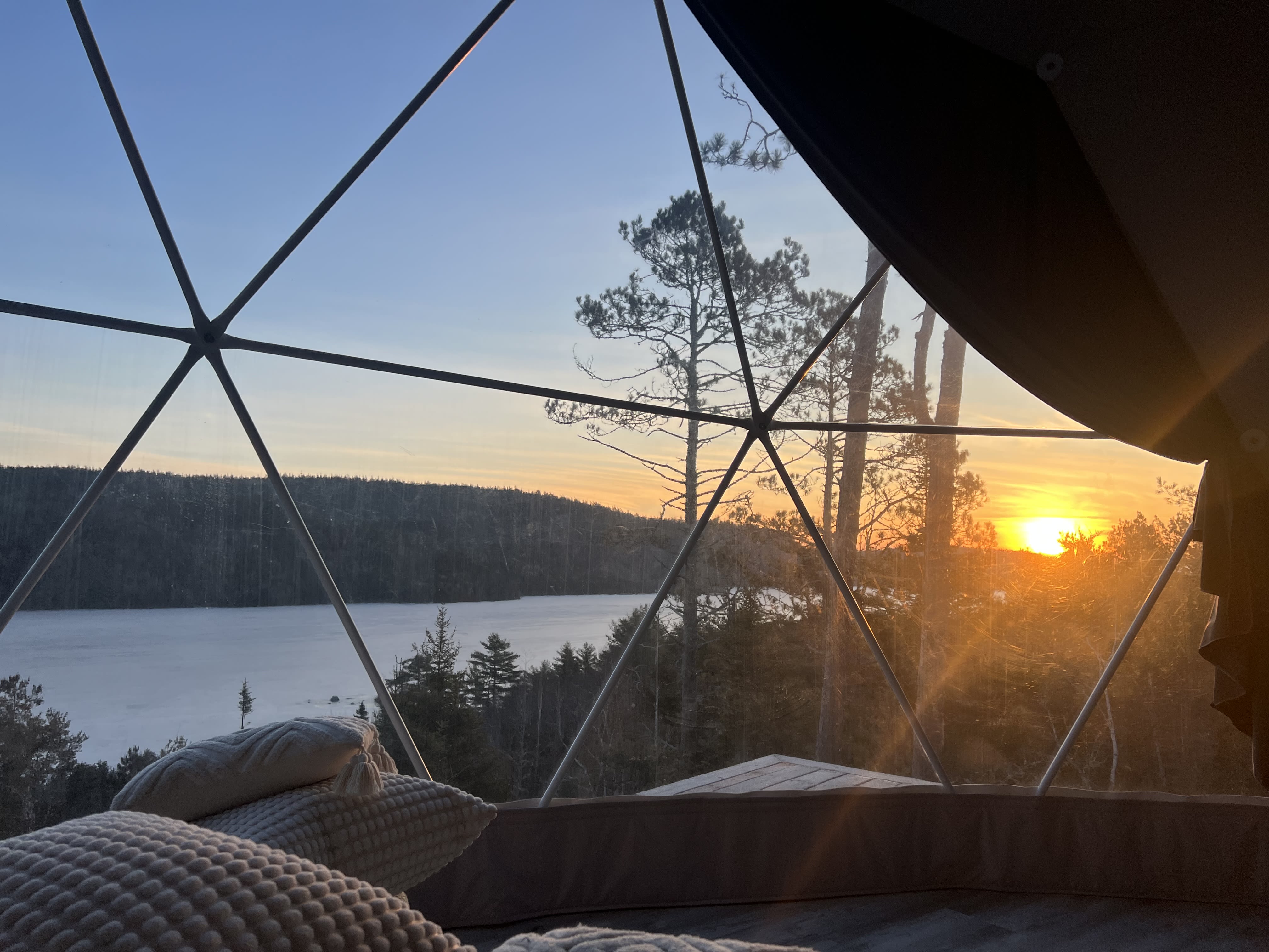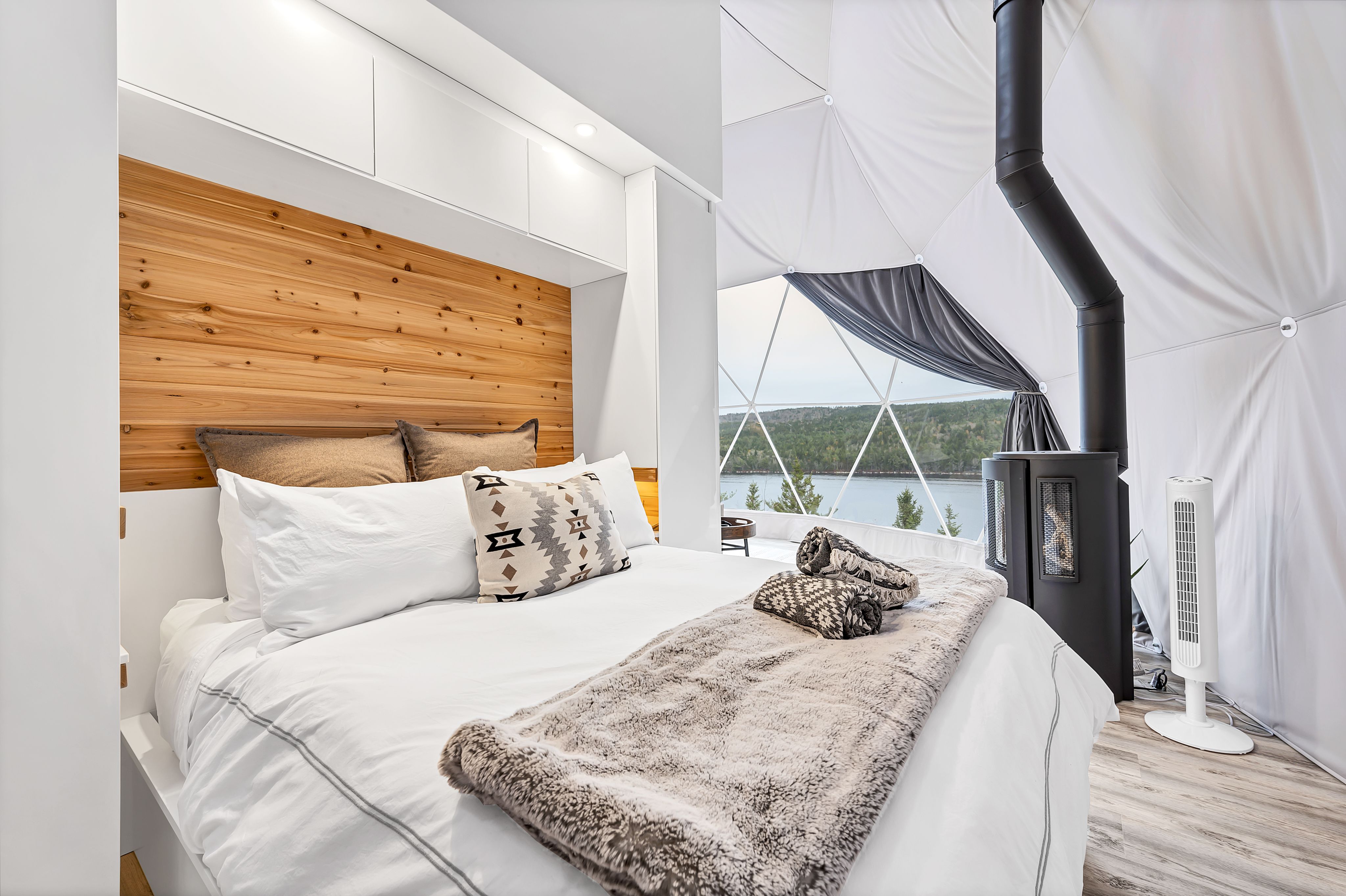 Each of Nalu’s three domes spans 26 feet in diameter, positioned to frame the lake, trees and sky through expansive panoramic windows.