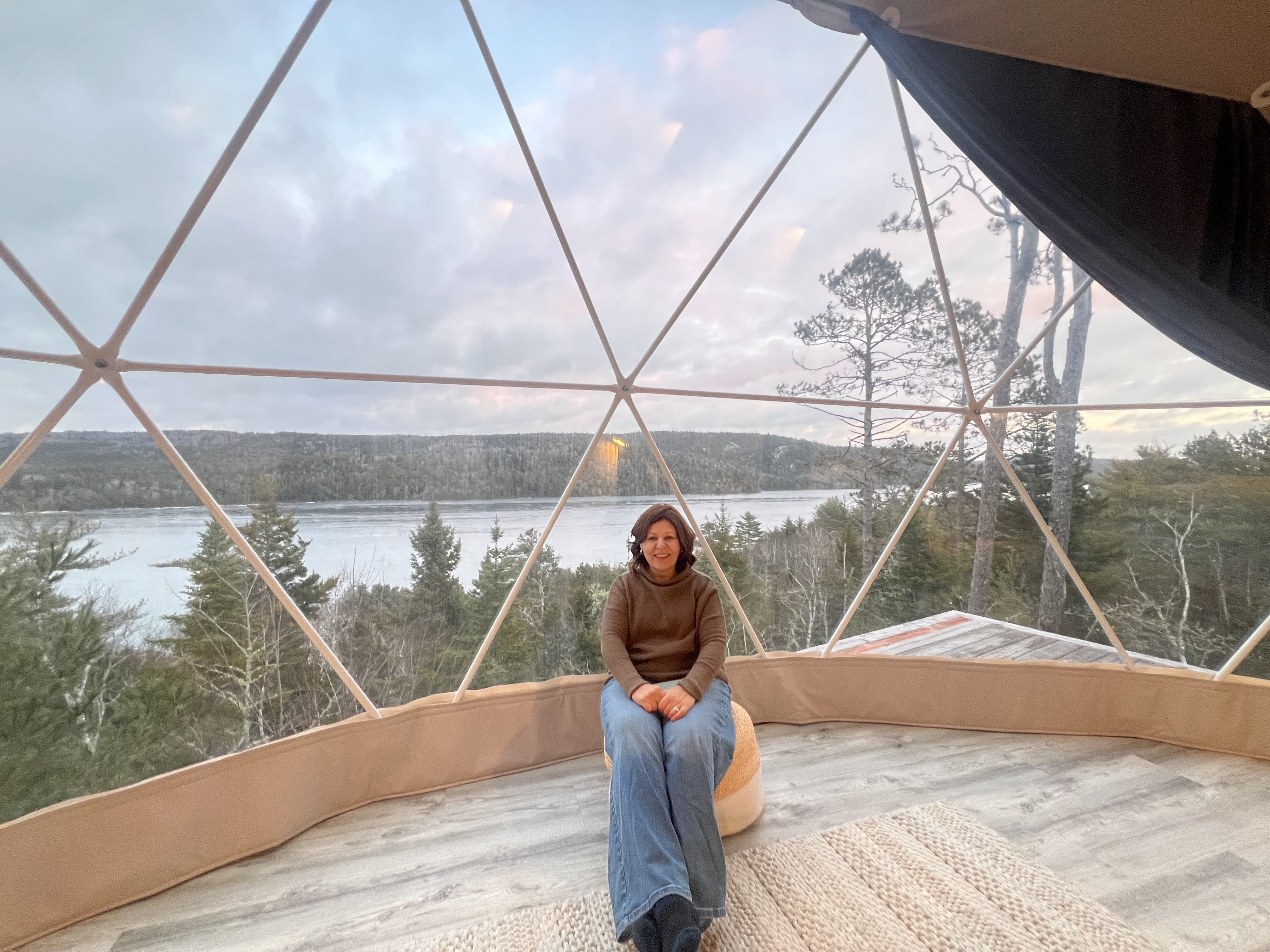 A private, spacious deck extends each dome’s living space outdoors. Outfitted with Muskoka chairs, a fire pit, and a hot tub, it’s an ideal perch for experiencing Mother Nature up close.