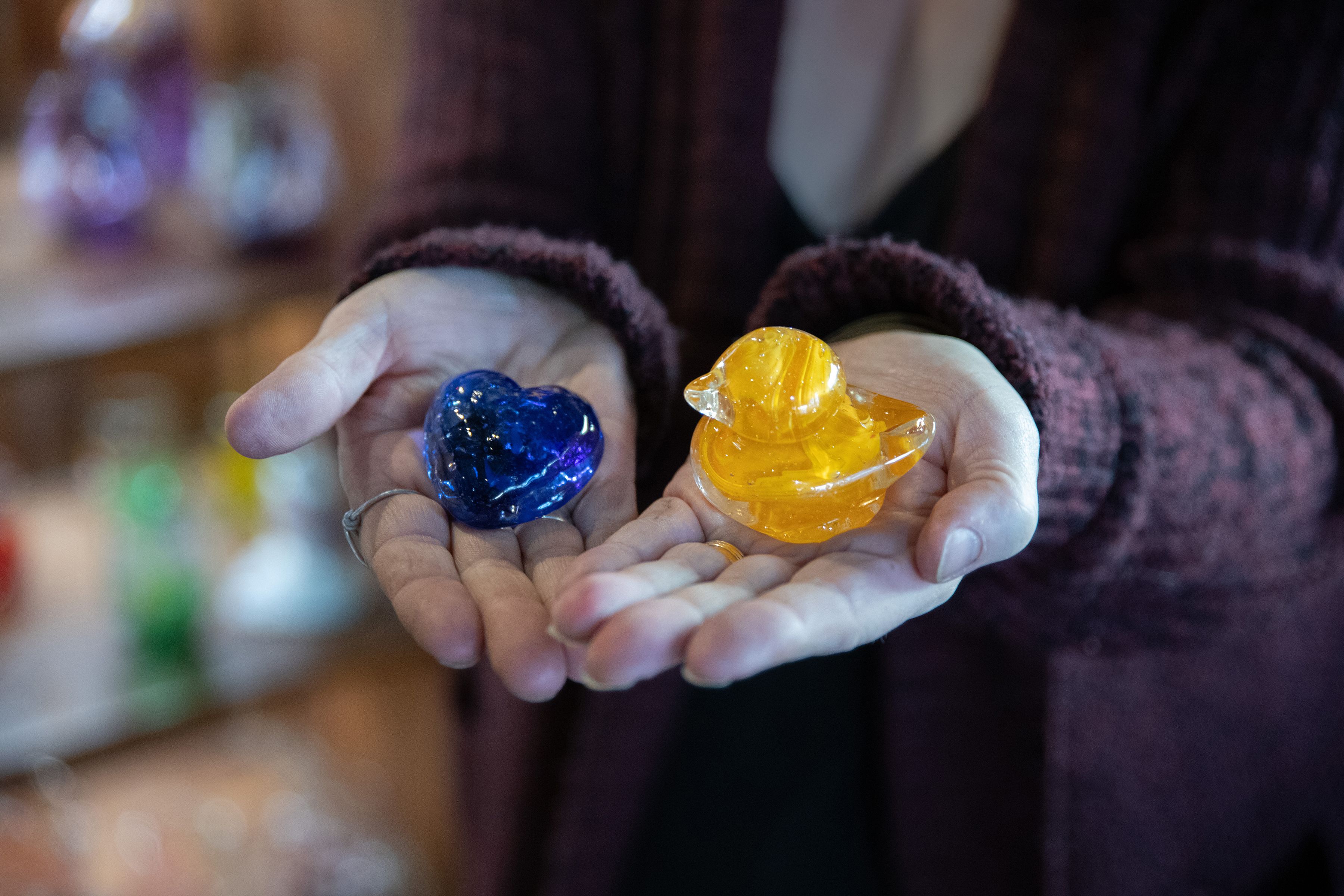 “Our little hearts and birds are all over the world,” says Luann with a satisfied grin. Glass mugs are just as popular among tourists. “Our mugs are made to be used every day,” says Luann. “They’re as hardy as us Yukoners.”