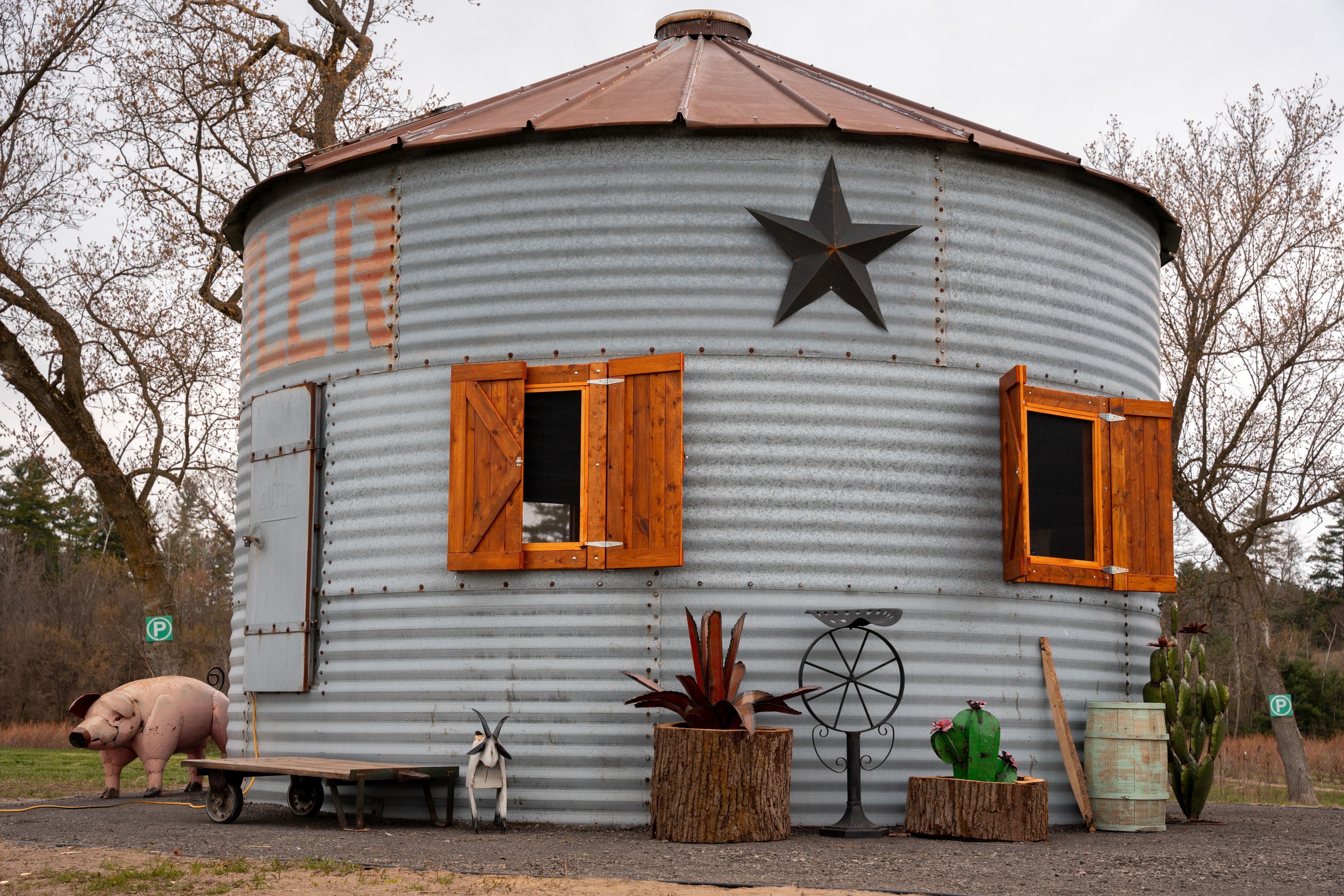 We pass by rows of blueberry plants, strawberry patches (some that grow in June and others in the fall), cherry trees, a flower garden and greenhouses as we make our way towards the repurposed grain bin that Elaine now uses as her workshop space.