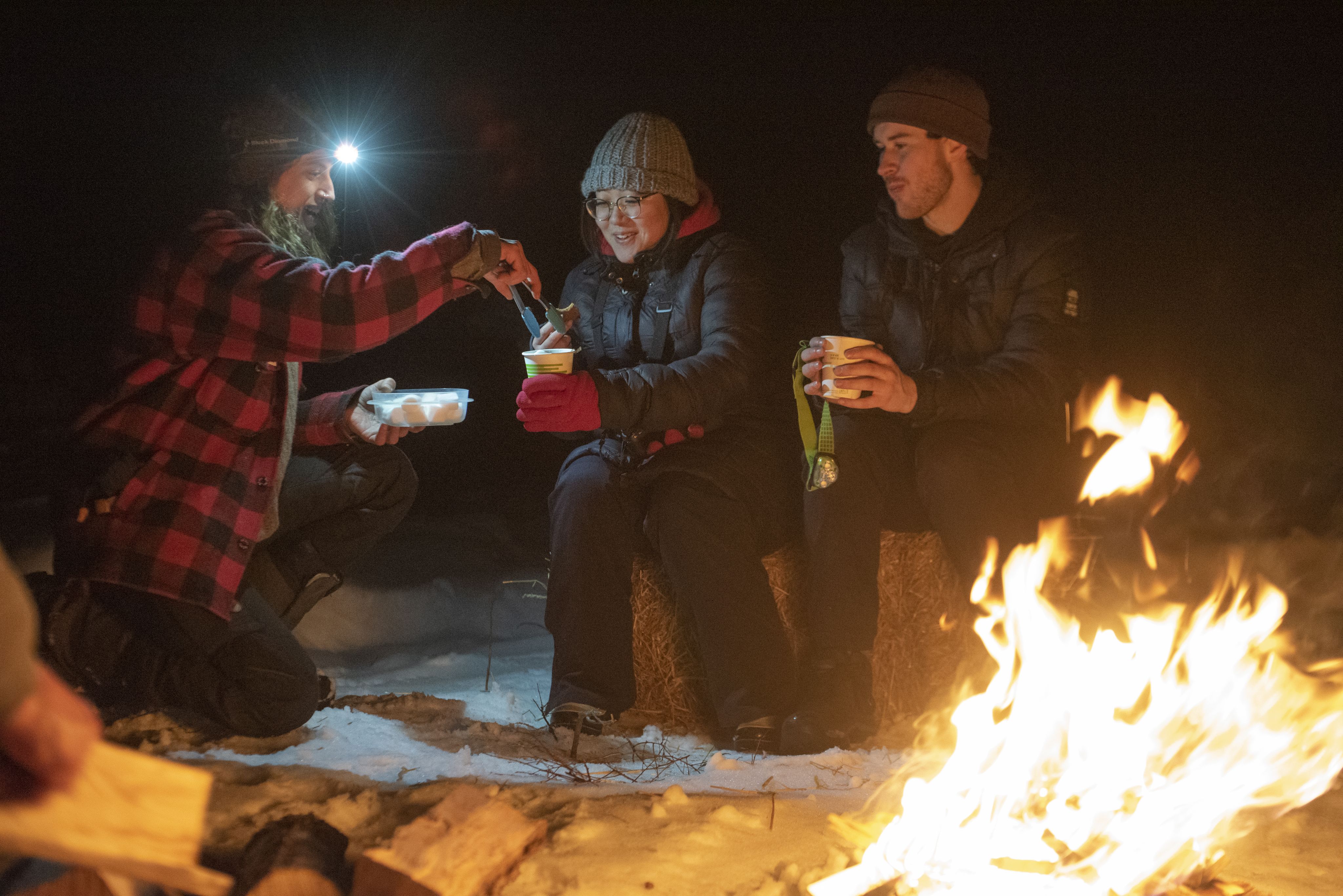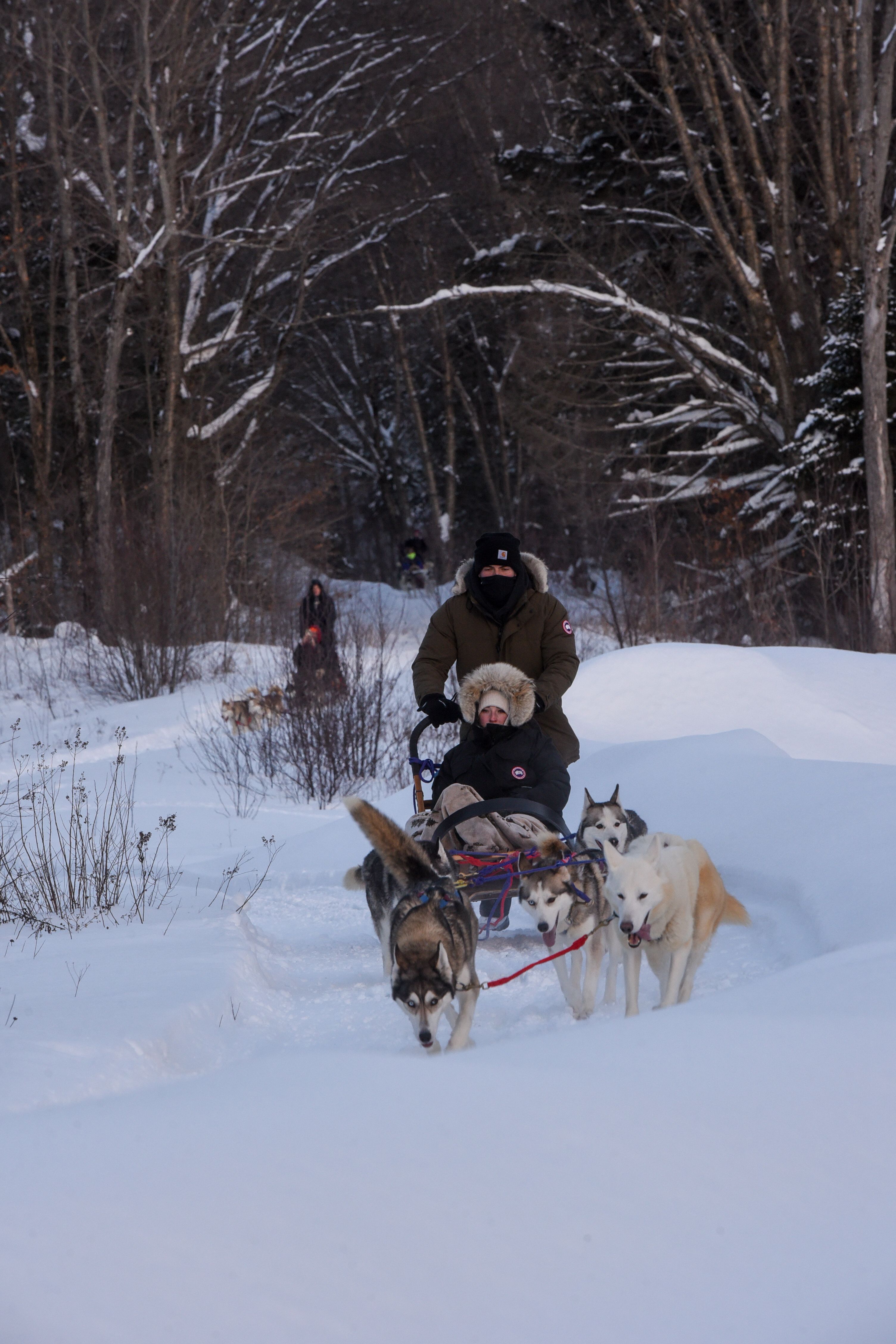 Winterdance offers guided excursions in various lengths — two-hour, half-day, full-day and moonlight tours — where adventurers of all ages are immersed in the Canadian wilderness while mushing along twisting trails through a forest of maple trees, pines and birch.