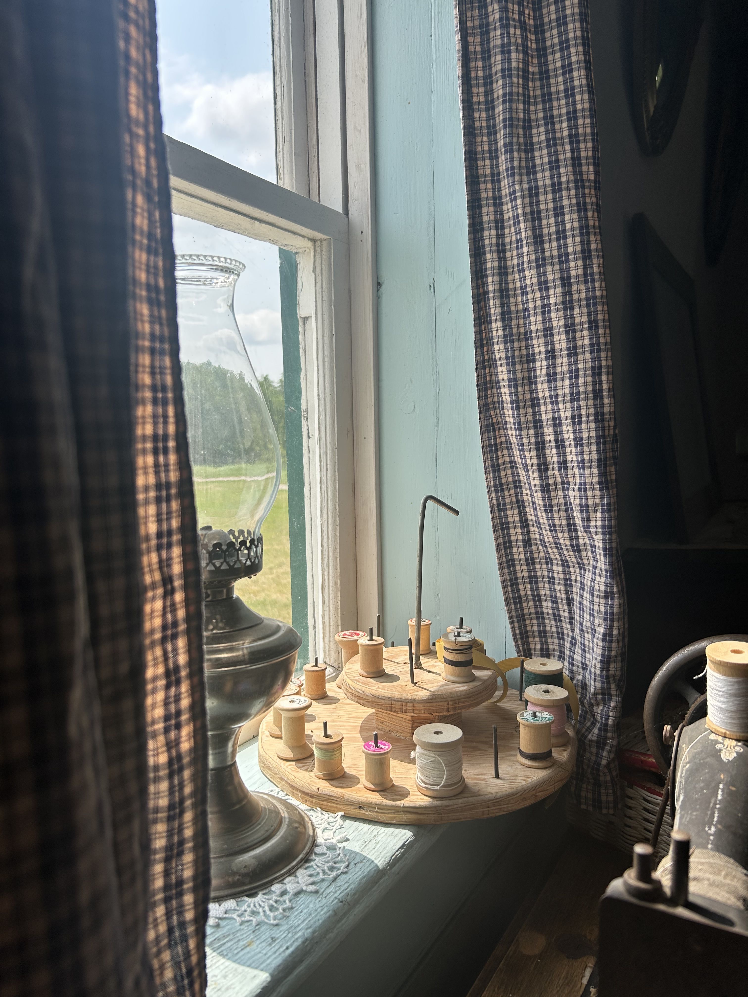The floorboards creak underfoot inside the Former Jean Caron Sr. House on the grounds of Batoche National Historic Site, their soft groan a reminder that this place has stood witness to generations. Sunlight filters through the thin plaid curtains, catching the worn wood of the window sill through which members of the Caron family once gazed — Métis farmers whose lives, like so many here, were shaped by both the land and the long shadow of conflict.