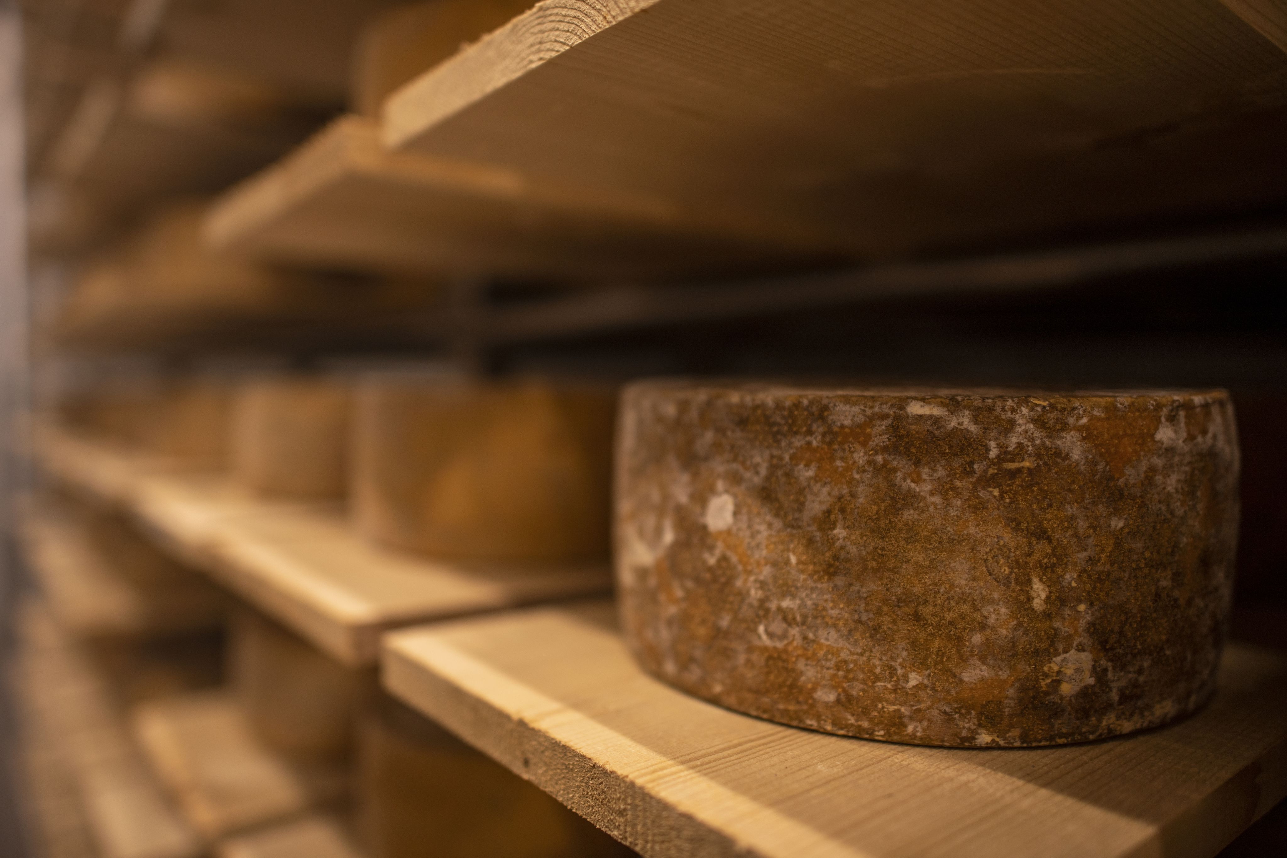 The Farmstead Cheese Économusée is a feast for the eyes — and the nose! A “scent organ” delivers the aroma of earth musk, wildflowers, and dry hay, Simon-Pierre explains. A little further on, an immersive room built inside an aging cellar lets visitors smell the cheese as it matures on shelves.