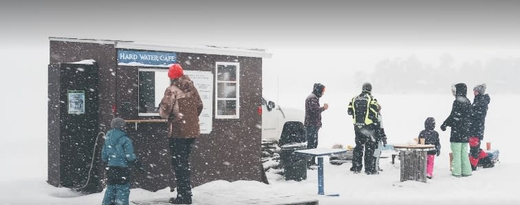 The Kenora area is less busy but also stunning in the winter with ice road systems for people to access cabins. Like a vision out of a Wes Anderson flick, the Hard Water Café stands in the middle of one of the main ice roads, where summer pilot Katharina Koerner serves up coffee to locals and dog treats to their petkins.