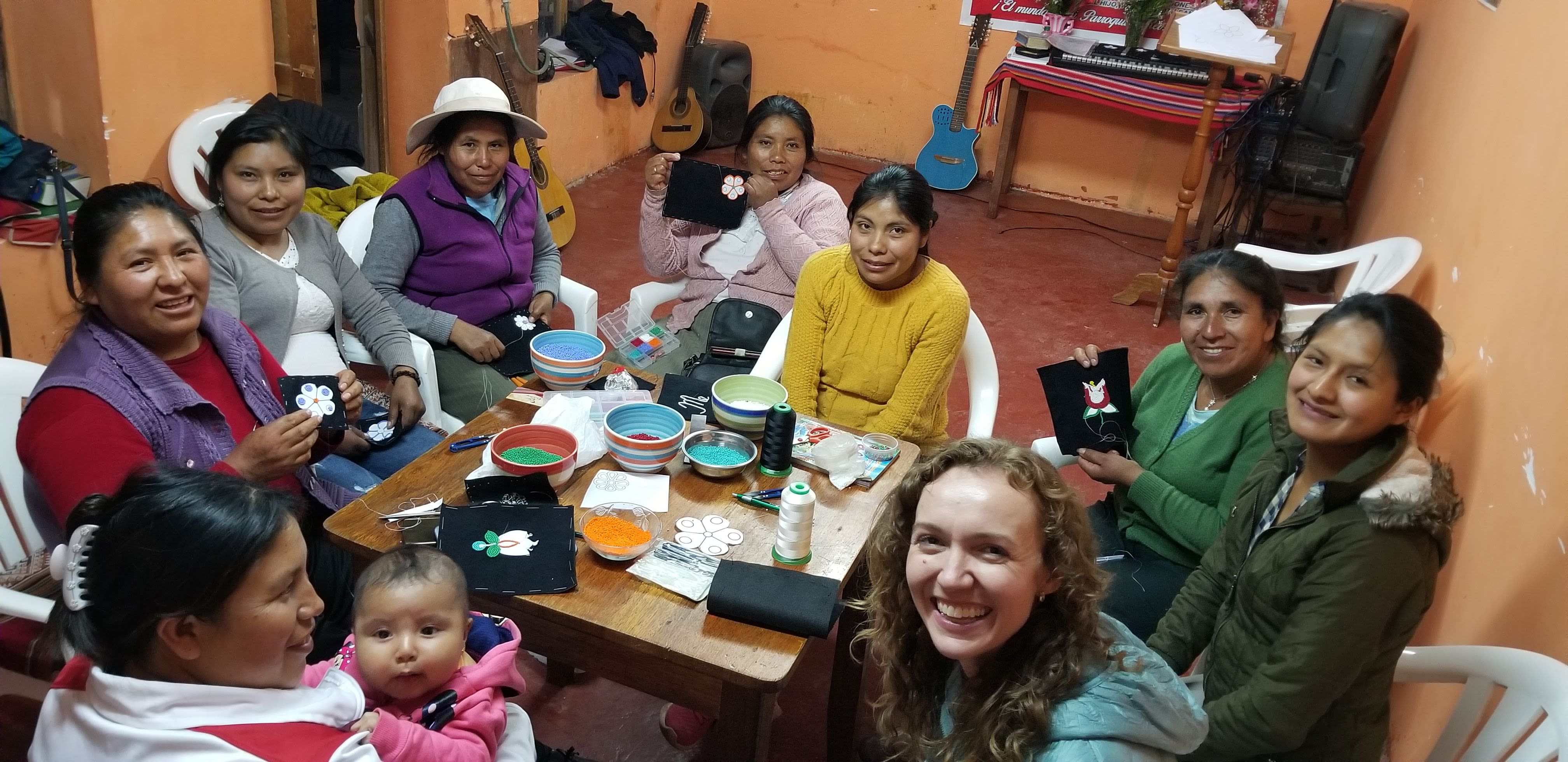 The collective supports single mothers and families in Peru through sustainable employment as all the wool is produced, dyed and woven there. In addition to weaving sashes, the collective is now making other items. Like the Métis, they embroider flowers on handbags and ankle boots.