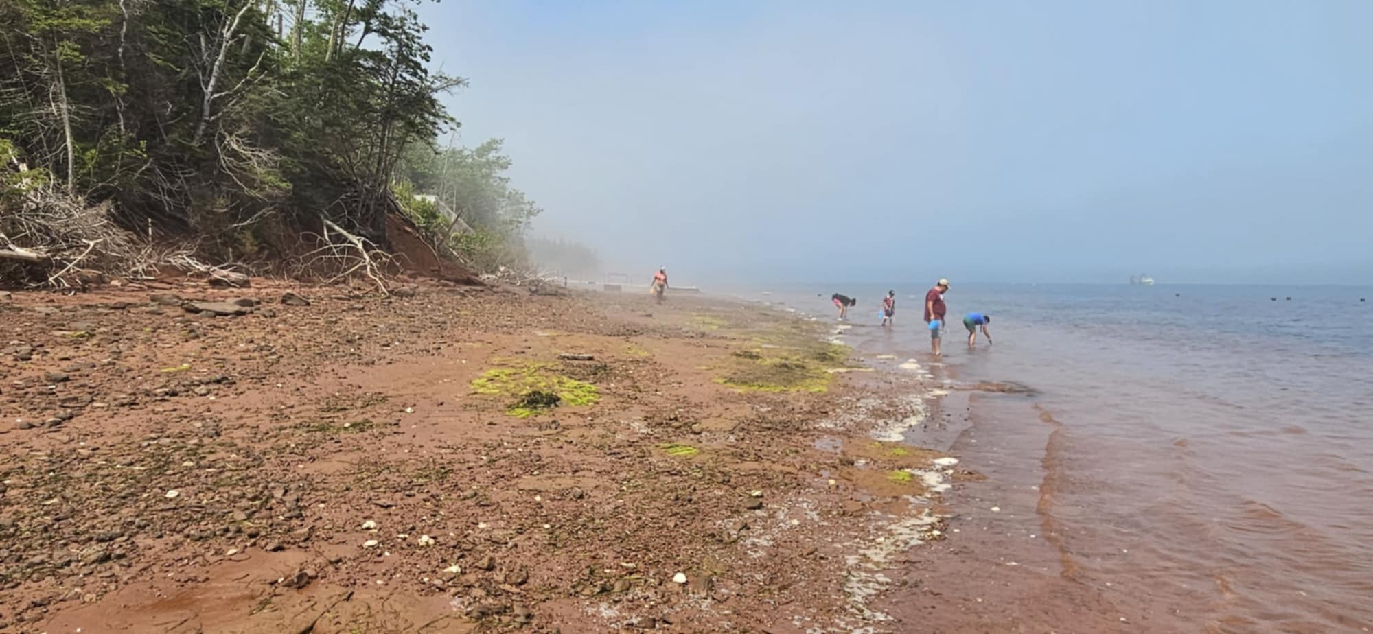 Jim and his wife, Gen, operate Along the Edge Experiences. From June to October, they offer interactive experiences, from clam digging to oyster tonging. Their famous Beachcombers Clam Boil is a feast for the senses: a walk along the red beach, a lesson in responsible shellfish harvesting, a meal of fresh seafood cooked in the salt water taken right from the river.