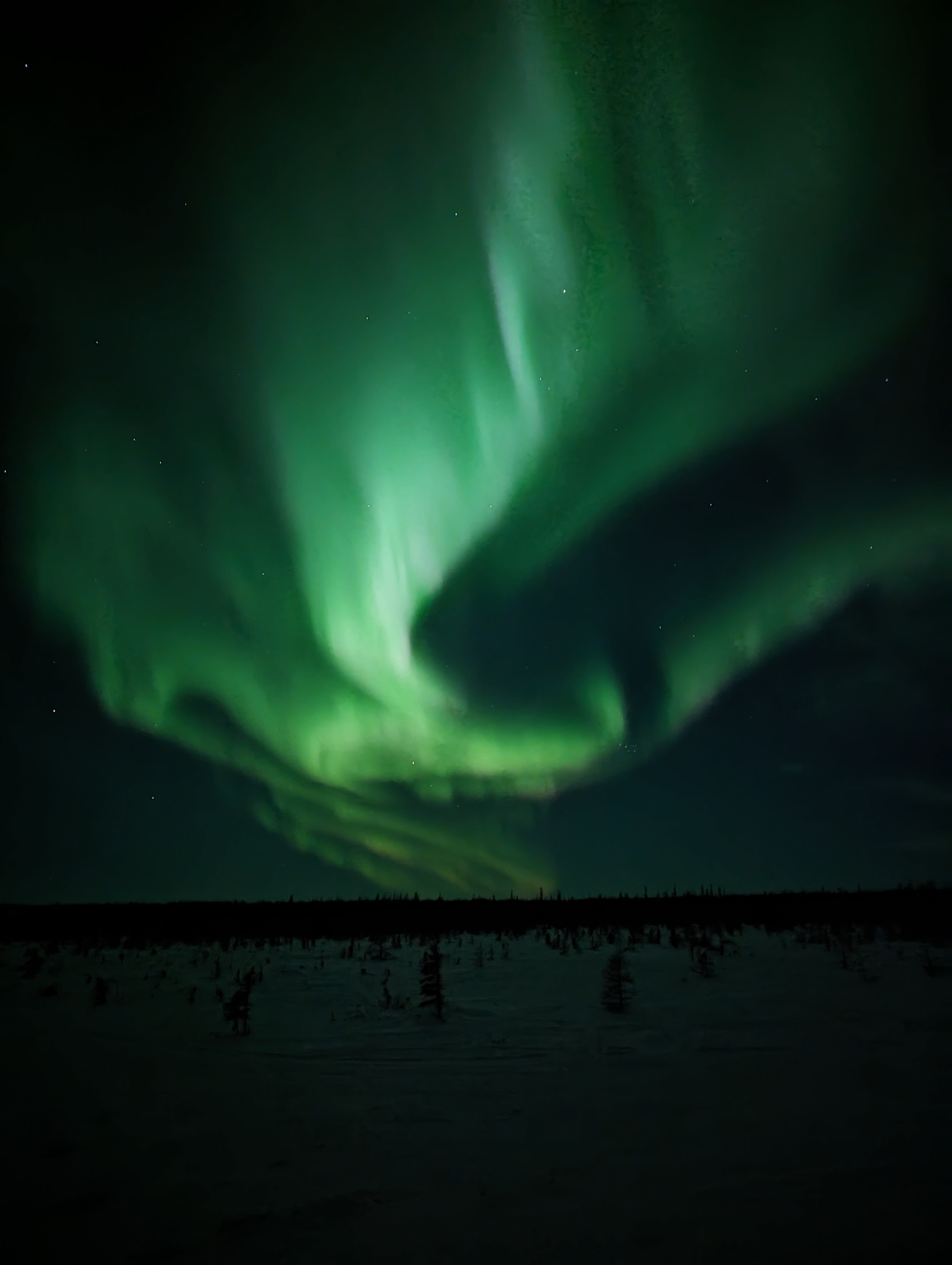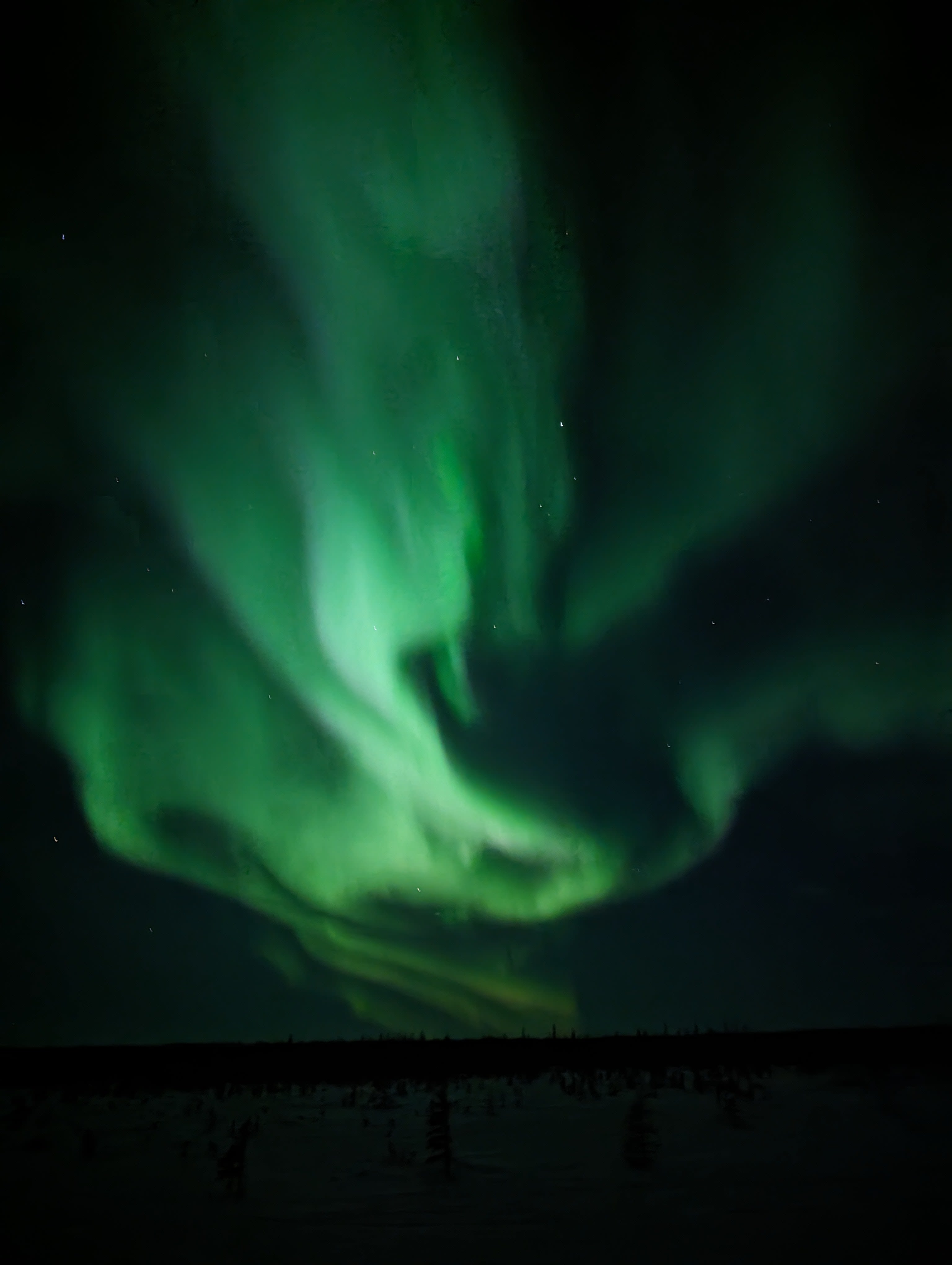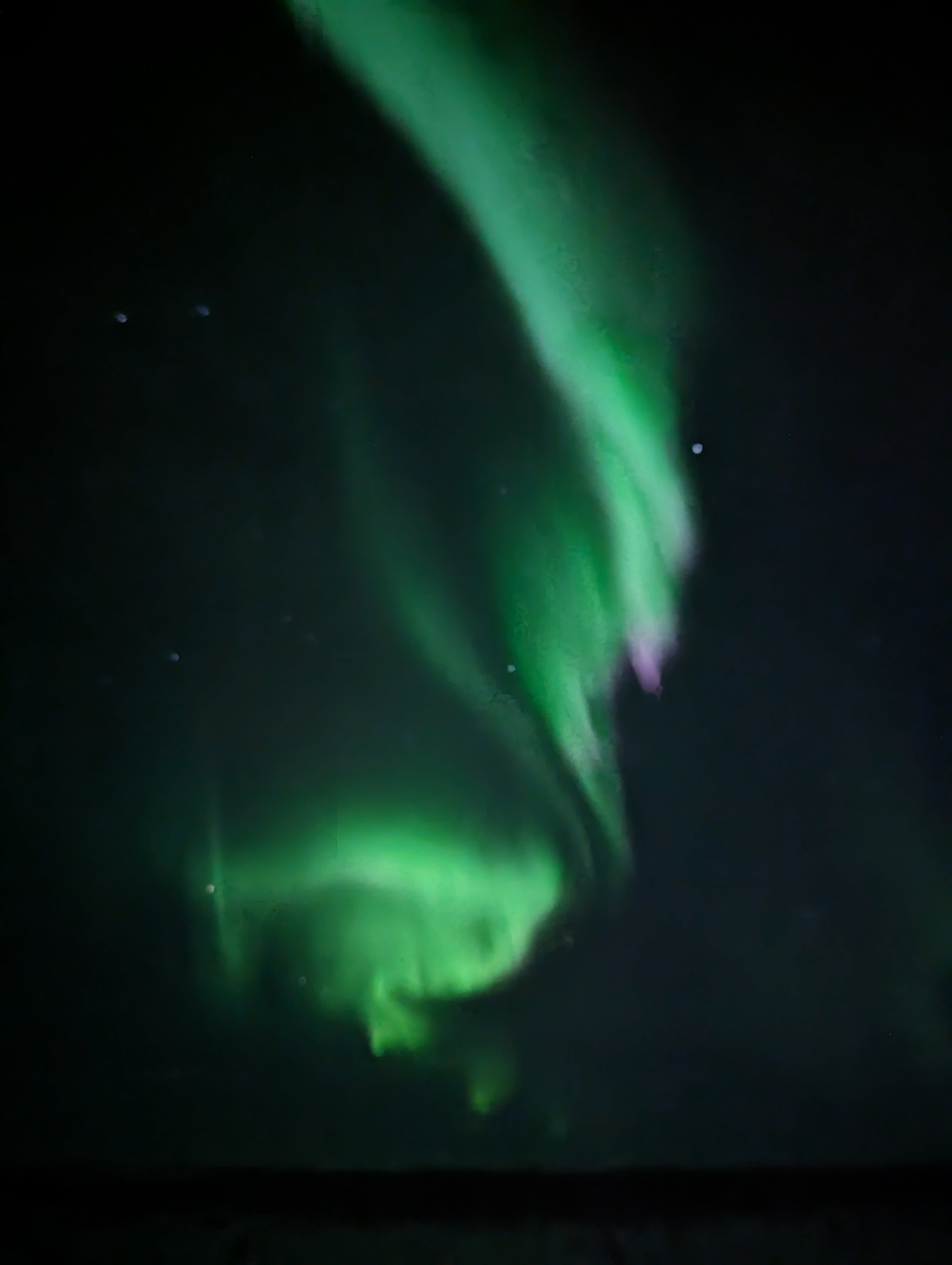 As the evening winds down, we wave goodbye to the amazing staff from Dan's Diner and climb back onto our Tundra Buggy to await the Northern Lights. They do not disappoint.