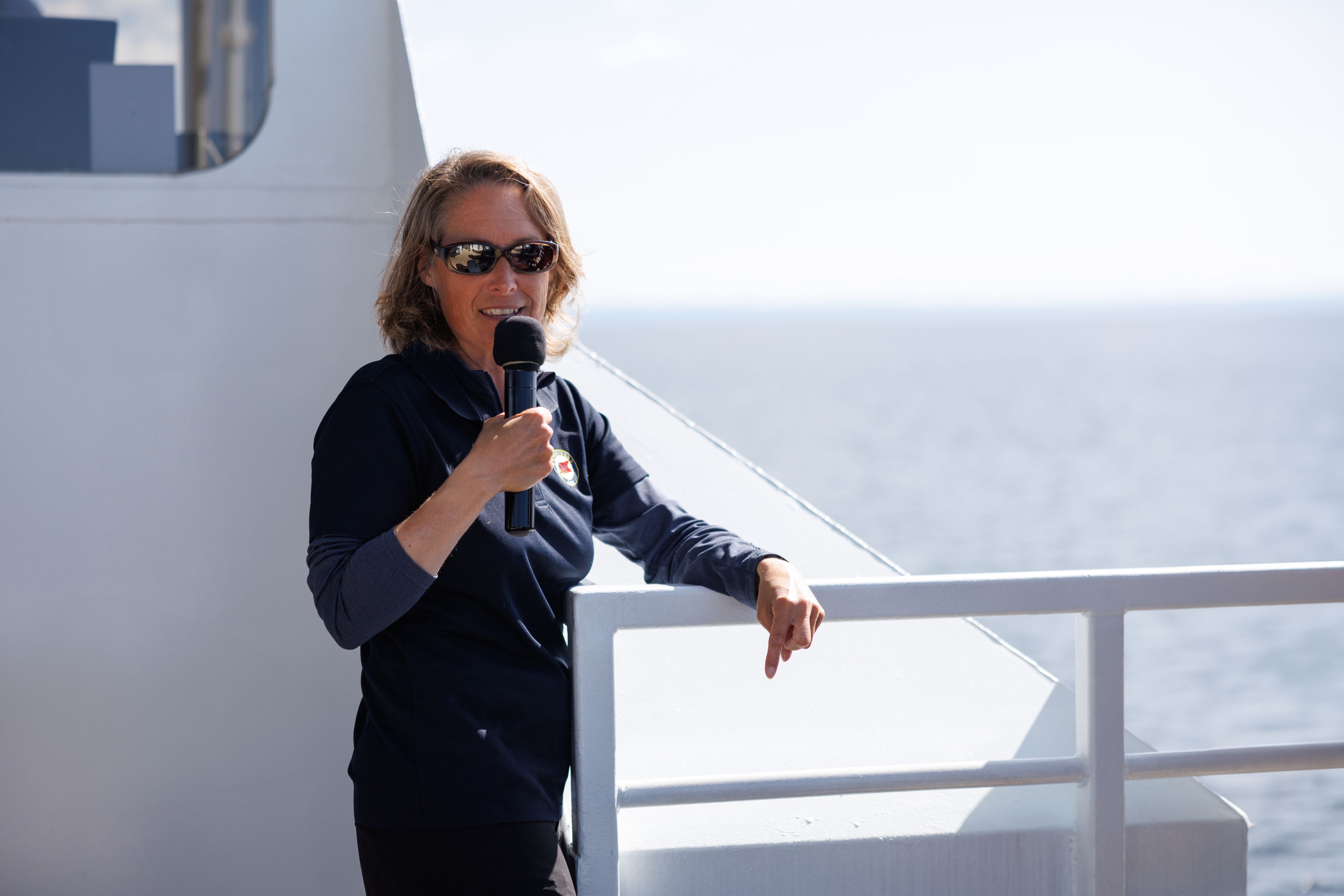 Elle reconnaît que les gens ont beaucoup plus conscience de l’impact d’une présence sur l’eau. Plusieurs personnes lui demandent si la croisière dérange. Elle en profite pour parler de la vie sous-marine fascinante et de l’écosystème fragile. Elle leur explique : "On va aller tranquillement. On a une vitesse maximale à respecter. Quand on va arriver sur le site, on va ralentir, être prudent dans nos approches."